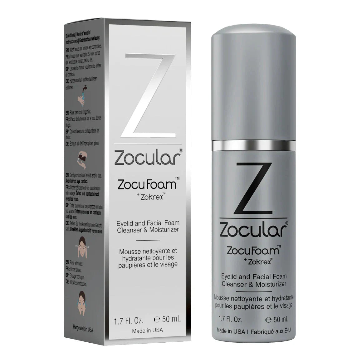ZocuFoam™ is an eyelid and facial cleanser and moisturizer. Presented in a 50ml bottle, provides approximately 30 applications. Recommended for daily use, at bedtime or as per your eye doctor recommendations.